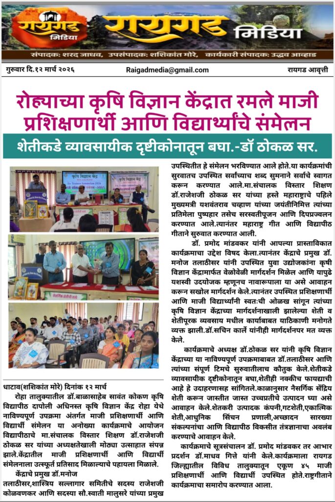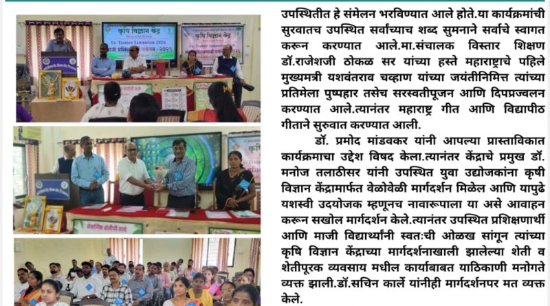 कृषी विज्ञान केंद्रात रमले माजी प्रशिक्षणार्थी आणि विद्यार्थ्यांचे संमेलन March 12, 2026 Editorial Staff