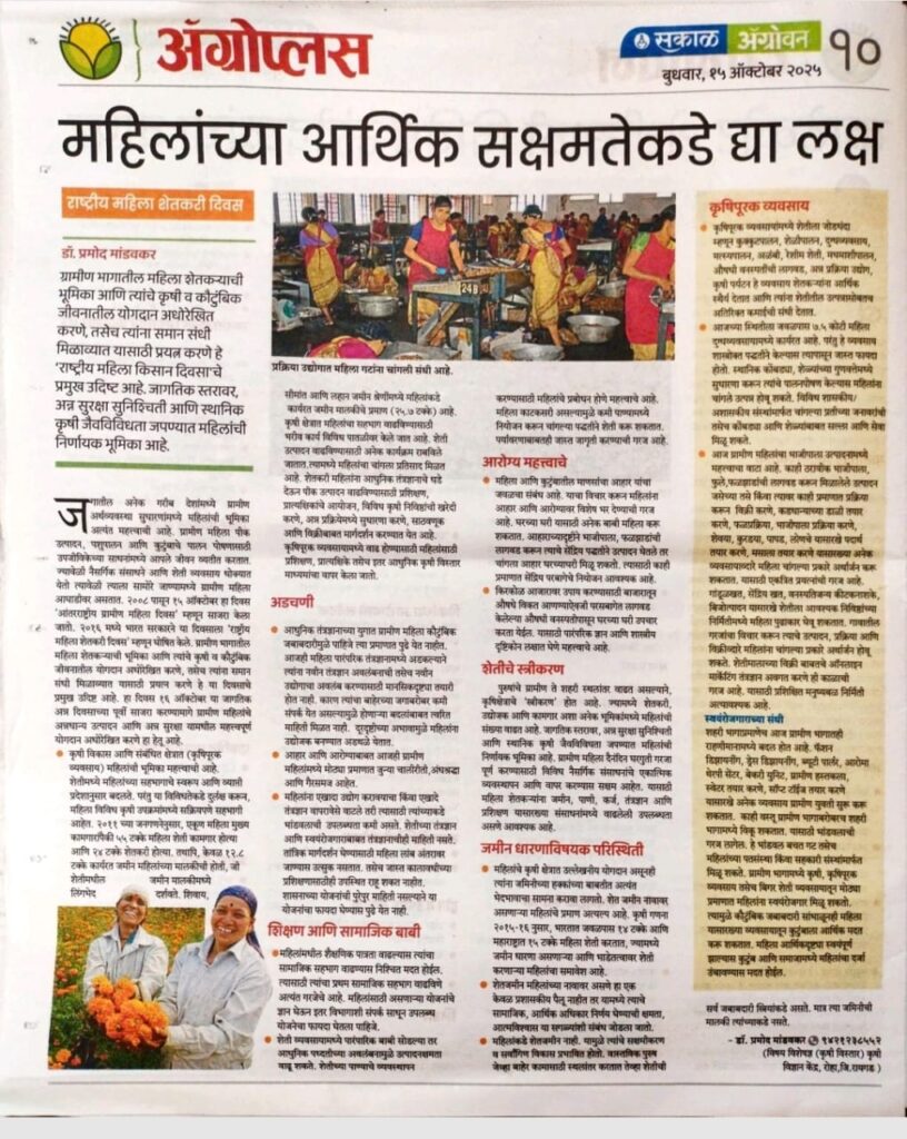 महिलांच्या आर्थिक सक्षमतेकडे द्या लक्ष – राष्ट्रीय महिला शेतकरी दिवस October 16, 2025 Editorial Staff